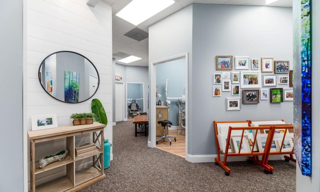Our dental office is decorated with soothing color palettes and decor, including original oil paintings by Dr. Popple’s father, Rick Popple. We use state-of-the-art technology and comforts to enhance each patient’s experience, and we always strive to create a comfortable and welcoming atmosphere.